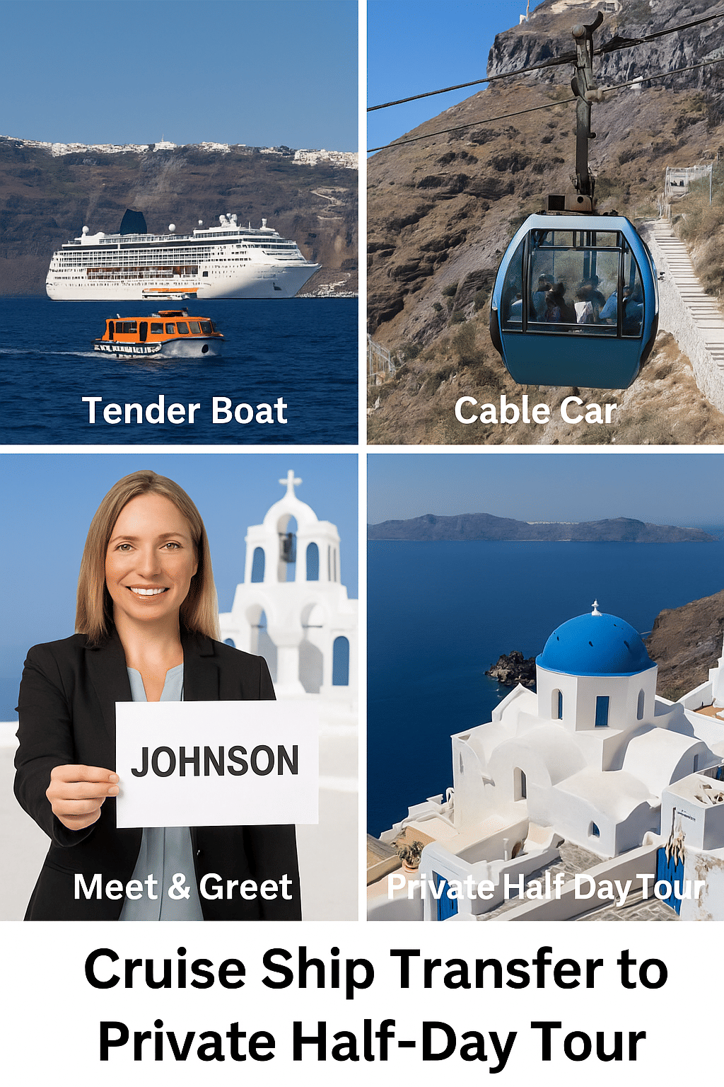 Whether it’s your first time in Santorini or your favorite stop in the Aegean, this experience will be a seamless, personal, and scenic highlight of your cruise.