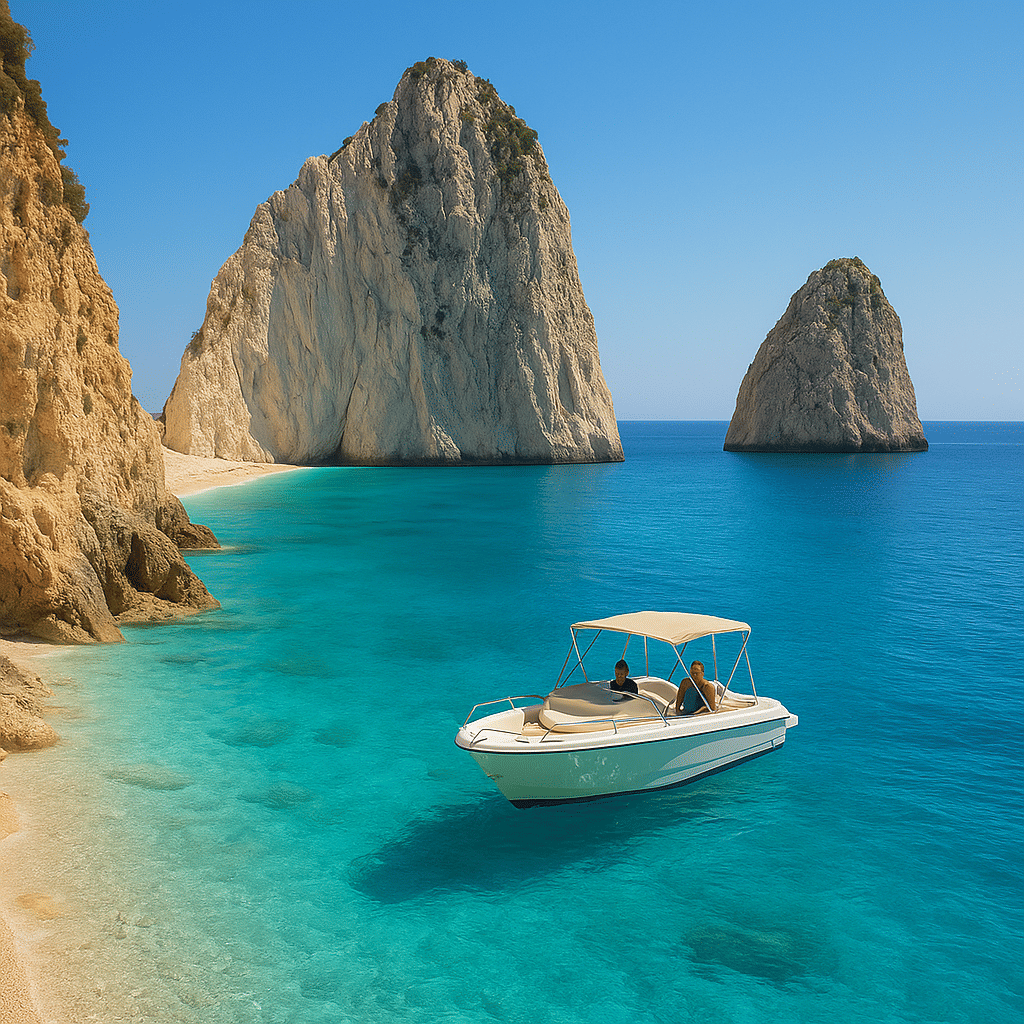 Marvel at the impressive Myzithres cliffs, a postcard-perfect landmark rising dramatically from the sea. Swim in the deep blue at Plakaki, and finish your experience at Korakonisi, a striking natural arch and snorkeling paradise.